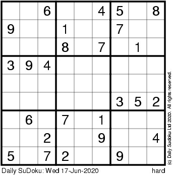 The Daily SuDoku: Wed 17-Jun-2020
