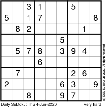 The Daily SuDoku: Thu 4-Jun-2020