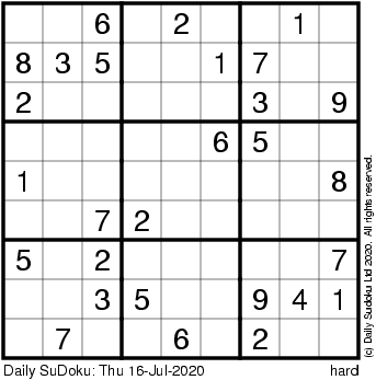 The Daily SuDoku: Thu 16-Jul-2020