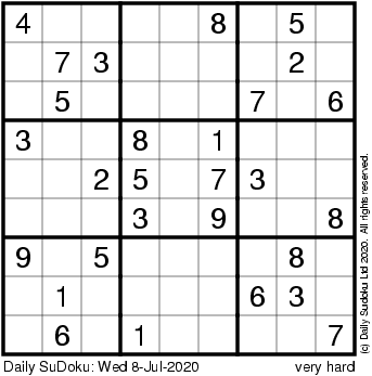 The Daily SuDoku: Wed 8-Jul-2020