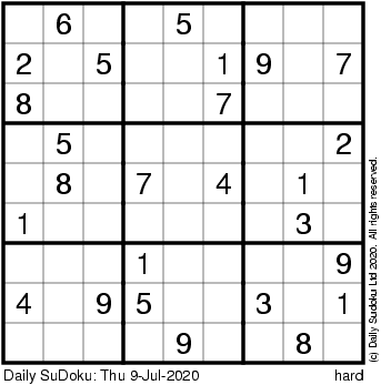 The Daily SuDoku: Thu 9-Jul-2020