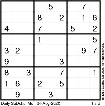 The Daily SuDoku: Mon 24-Aug-2020