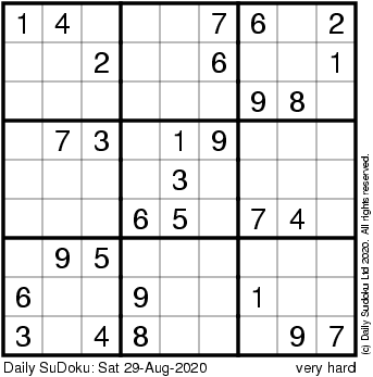 The Daily SuDoku: Sat 29-Aug-2020