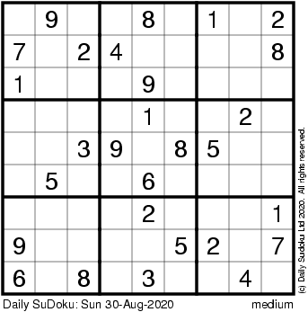 The Daily SuDoku: Sun 30-Aug-2020