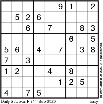 The Daily SuDoku: Fri 11-Sep-2020