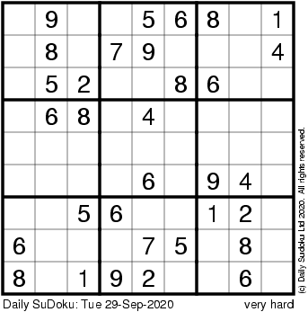 The Daily SuDoku: Tue 29-Sep-2020