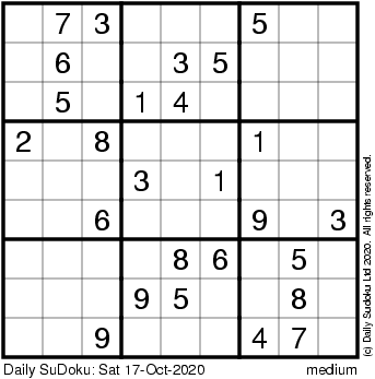 The Daily SuDoku: Sat 17-Oct-2020