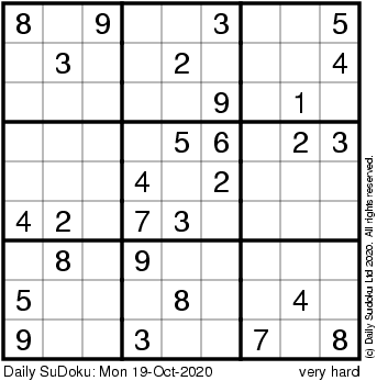The Daily SuDoku: Mon 19-Oct-2020