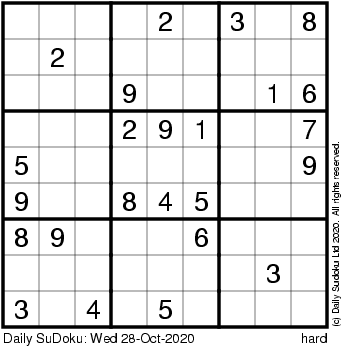 The Daily SuDoku: Wed 28-Oct-2020