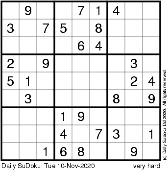 The Daily SuDoku: Tue 10-Nov-2020