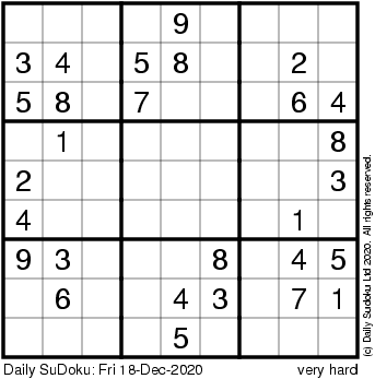 The Daily SuDoku: Fri 18-Dec-2020