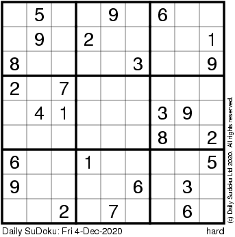 The Daily SuDoku: Fri 4-Dec-2020