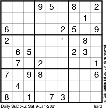The Daily SuDoku: Sat 9-Jan-2021