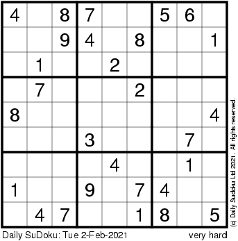 The Daily SuDoku: Tue 2-Feb-2021