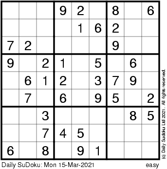 The Daily SuDoku: Mon 15-Mar-2021