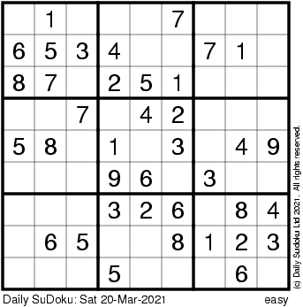 The Daily SuDoku: Sat 20-Mar-2021