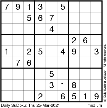 The Daily SuDoku: Thu 25-Mar-2021