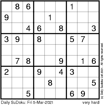 The Daily SuDoku: Fri 5-Mar-2021