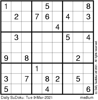 The Daily SuDoku: Tue 9-Mar-2021