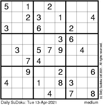 The Daily SuDoku: Tue 13-Apr-2021
