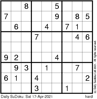 The Daily SuDoku: Sat 17-Apr-2021