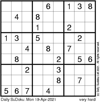 The Daily SuDoku: Mon 19-Apr-2021