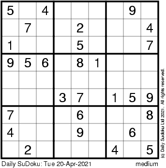 The Daily SuDoku: Tue 20-Apr-2021