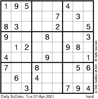 The Daily SuDoku: Tue 27-Apr-2021