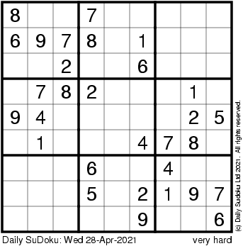 The Daily SuDoku: Wed 28-Apr-2021