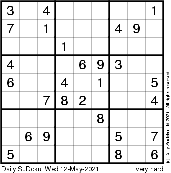 The Daily SuDoku: Wed 12-May-2021