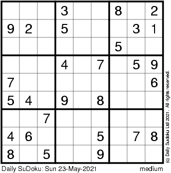 The Daily SuDoku: Sun 23-May-2021