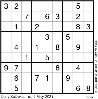 The Daily SuDoku: Tue 4-May-2021