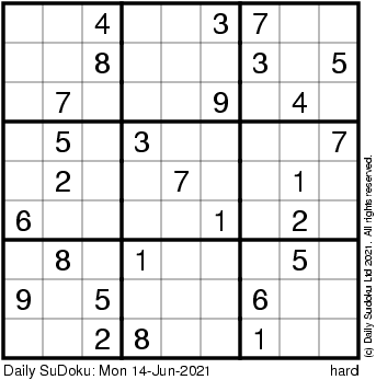 The Daily SuDoku: Mon 14-Jun-2021