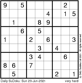 The Daily SuDoku: Sun 20-Jun-2021