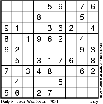 The Daily SuDoku: Wed 23-Jun-2021