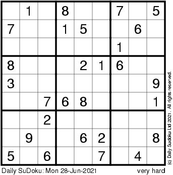 The Daily SuDoku: Mon 28-Jun-2021