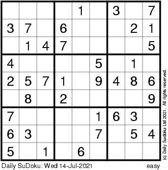The Daily SuDoku: Wed 14-Jul-2021