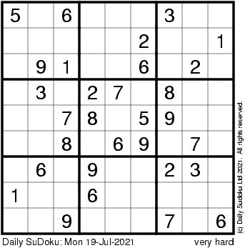 The Daily SuDoku: Mon 19-Jul-2021