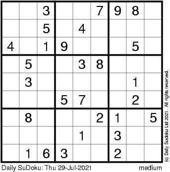 The Daily SuDoku: Thu 29-Jul-2021