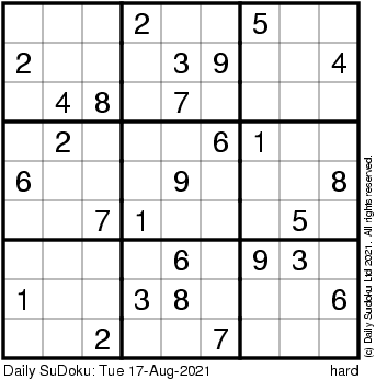 The Daily SuDoku: Tue 17-Aug-2021