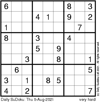 The Daily SuDoku: Thu 5-Aug-2021