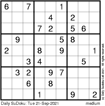 The Daily SuDoku: Tue 21-Sep-2021