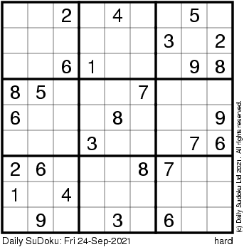The Daily SuDoku: Fri 24-Sep-2021