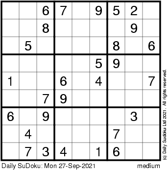 The Daily SuDoku: Mon 27-Sep-2021