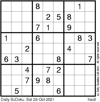 The Daily SuDoku: Sat 23-Oct-2021