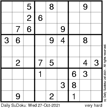 The Daily SuDoku: Wed 27-Oct-2021