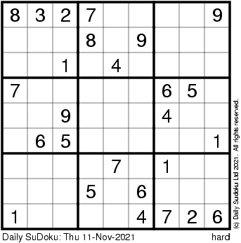 The Daily SuDoku: Thu 11-Nov-2021