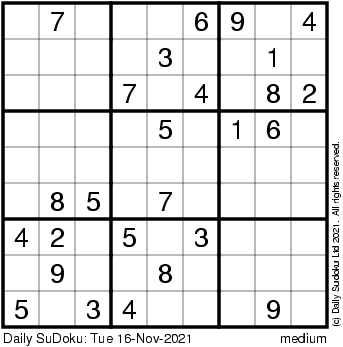 The Daily SuDoku: Tue 16-Nov-2021