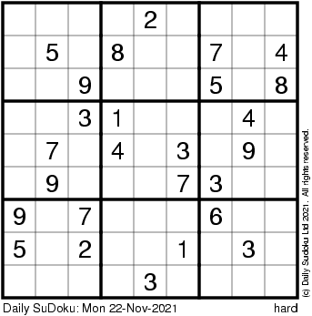 The Daily SuDoku: Mon 22-Nov-2021