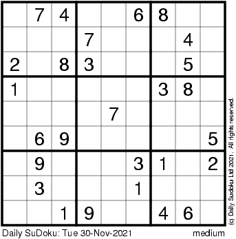 The Daily SuDoku: Tue 30-Nov-2021